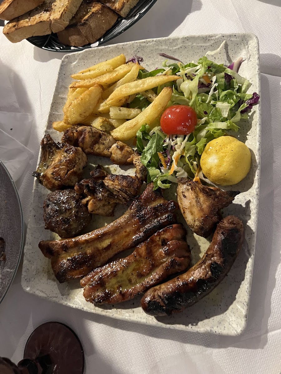 Authentich greek experience,we went there by suggestion of a local person. Located inside the island 10 minutes far away from Zacinto city, you can park the car close the restaurant that is nice, cute and comfortable, managed by a family who hardly speak english, but with the ancient language of hands and eyes you will be understood and helped with the food choice. We ordered real greek salad, and by advising, mother in love stourdomaki (forgive me in advance if it mistaken), feta with honey in the oven and rabbit in grandma's sauce. The portion are plenty and tasteful, we shared everything cause it was too much. The desserts were homemade and brought by the madam. Prices aren't expensive so affordable for everyone.